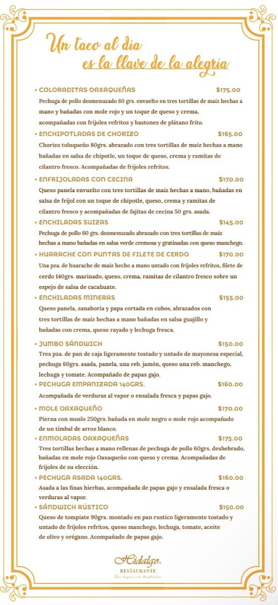Hidalgo Restaurante, located in the heart of Toluca de Lerdo, offers a delightful dining experience from 7:30 AM to 9:00 PM. Renowned for its delicious breakfasts and great coffee, this family-friendly establishment has earned praise for its clean ambiance and attentive service. Diners enjoy a range of classic Mexican dishes at an affordable price, making it a regular spot for locals and visitors alike. Highlights include their Oaxaca hot chocolate and a variety of mouthwatering plates, all within the budget of $100-$150 pesos. While service may vary, the overall atmosphere fosters a welcoming environment perfect for family gatherings.